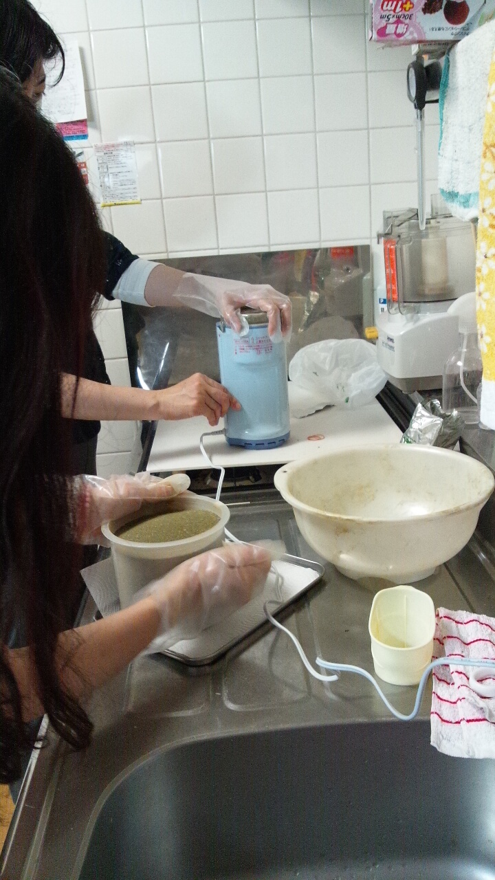 生活クラブ港南センターに保管してあるお茶をいただいて、磯子区にある「横浜市民測定所」に測定を依頼しました。瓶の中には100gのお茶がパック詰めのまま入っていました。測定には分量が必要だということで10パックを持ち込みました。パックから出しフードプロセッサーで粉末状にして、1リットルの容器に700gを入れて計測しました。