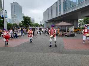 沖縄の人たちによるエイサーから始まり、歌や演奏があり、その後、横浜ノースドックを臨む新港パークまでパレードしました。